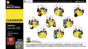 The Big Classroom offers participants the opportunity to develop a range of practical teaching techniques; the highlights of all our training days with schools, packed into one day, led by Tom Sherrington and other members of the WalkThrus team.